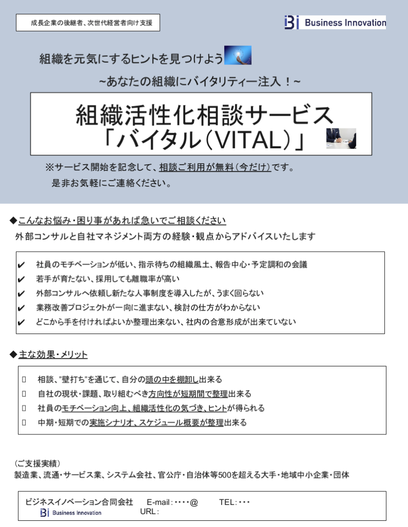 - 社員のモチベーションが低い、指示待ちの組織風土、報告中心・予定調和の会議